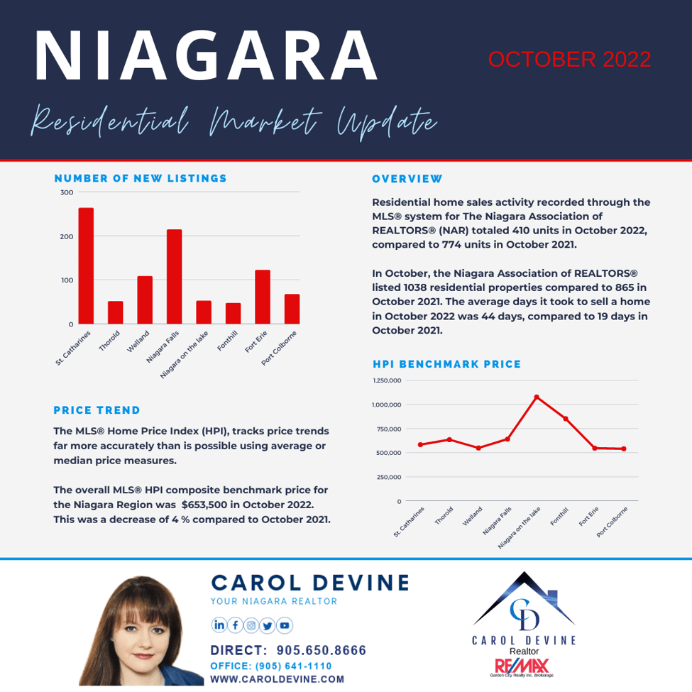 Last month we took a look at the fact that both here in Niagara and around the globe, economies are in turmoil. Inflation is running at a pace we haven’t seen in almost 40 years, and as a result, governments are scrambling to control it by raising interest rates. That situation hasn’t changed. In fact, even in the face of a possible recession next quarter, the Governor of the Bank of Canada has vowed to stay the course of interest rate hikes in order to combat inflation. We’ll see. So far that tactic hasn’t had much of an effect on run-away inflation, but it has definitely impacted the housing market.